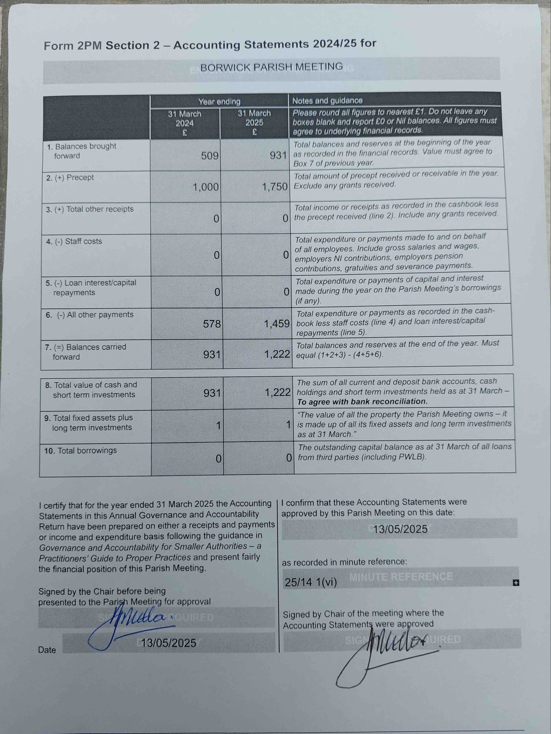 The next Parish Meeting will take place on Tuesday 7th October 2025 at 19:30.